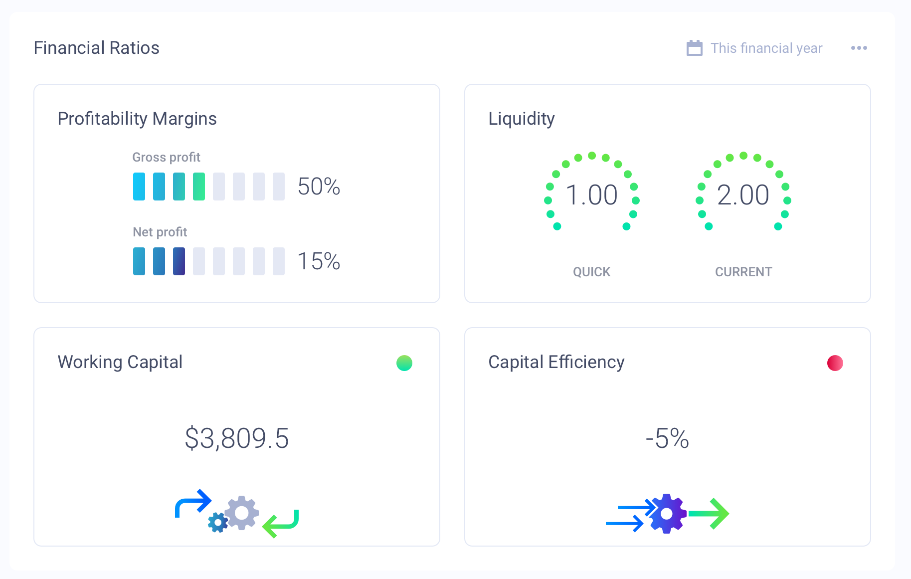 - Current Ratio: Often referred to as the working capital ratio, this is a fundamental liquidity metric. By dividing a business’s current assets by its current liabilities, you can get a quick gauge of its ability to cover short-term obligations.